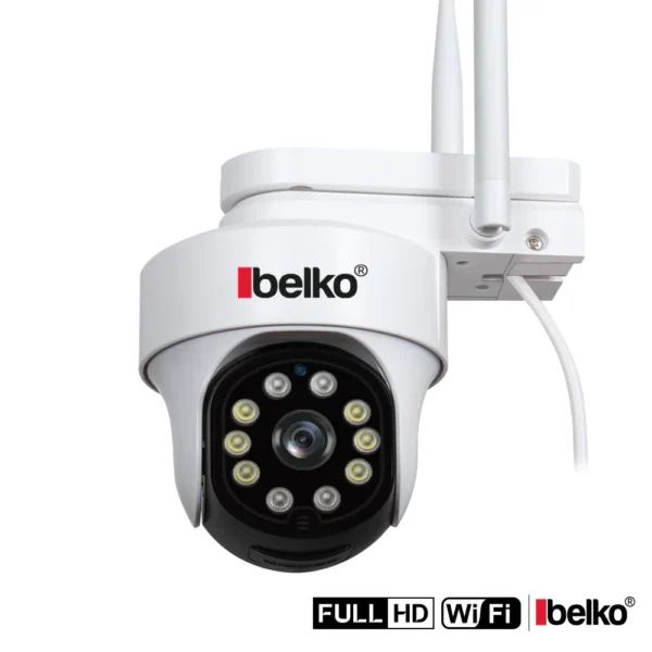 Belko® Überwachungskamera, 1080p mit WLAN & 320 ° Rotation für Aussen, Bewegungserkennung, 20m Nachtsichtgserkennung